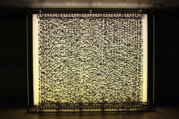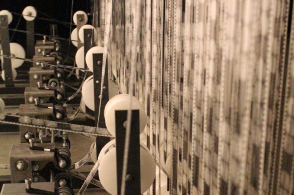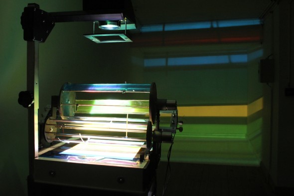 Continuization Loop by Wim Janssen – (and a view showing the mechanism) A live, moving image of ‘noise’ created by an amazing construction of reels that feed one continuous 35mm loop of film exposed as black or clear frames… stunning.