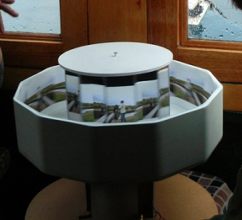 Our aim was to document sounds and images on our journey, to then transform the boat into an audio-visual ‘organism’ – playing the sounds and images back in relation to the speed we are currently travelling. To control this, I made a waterwheel to sit on the front of the boat to gauge our speed, and sent this information to a praxinoscope that was displaying stop motion animations of moments from our journey.
